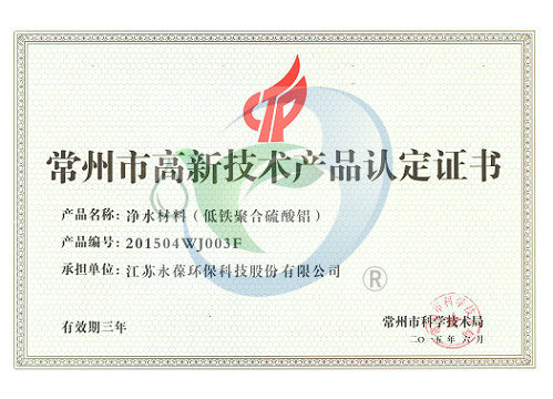 公司堅持科技創新,不斷拓展危廢資源綜合利用工藝,技術部新研發的資源綜合利用產品低鐵聚合硫酸鋁榮獲常州市高新技術產品。