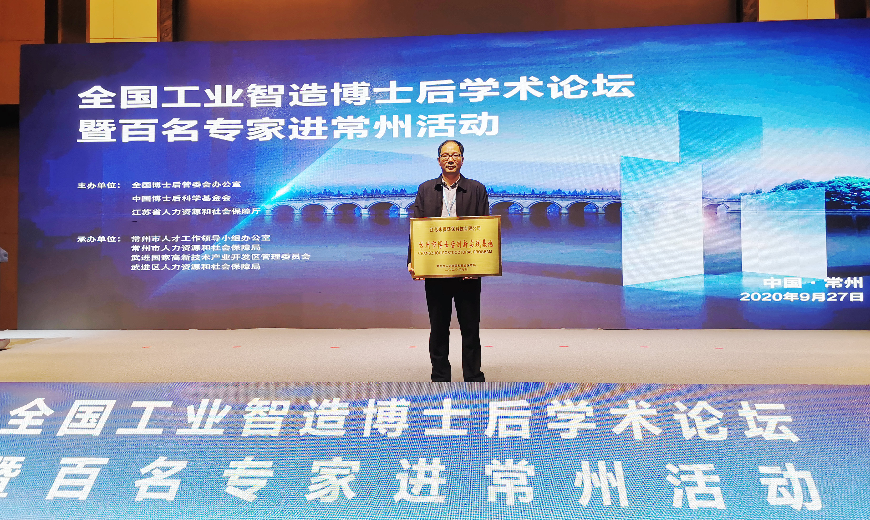 2020年9月27日,永葆環保“常州市博士后創新實踐基地”授牌儀式在希爾頓帝豪酒店隆重舉行,標志著我公司人才建設水平和科研創新能力達到了新的高度。