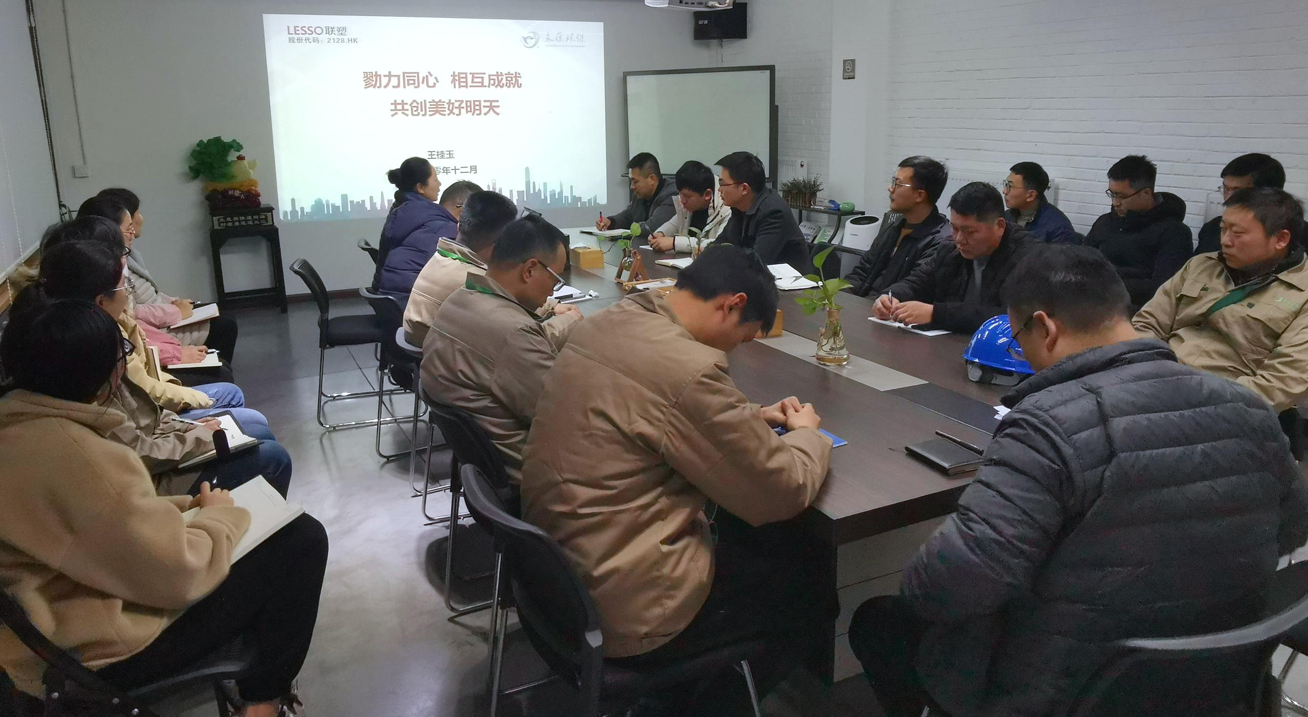 王總以“永葆環(huán)保歷史、現(xiàn)狀、未來”為主線,講述了永葆環(huán)保成長期、永葆環(huán)保轉(zhuǎn)型期、永葆環(huán)保發(fā)展期。分別介紹了公司控股股東“聯(lián)塑集團”,永葆環(huán)保旗下子公司企業(yè)以及公司業(yè)務(wù)領(lǐng)域、發(fā)展現(xiàn)狀、未來展望。王總強調(diào),目前公司發(fā)展正處于關(guān)鍵時期,完成這一關(guān)鍵時期的使命擔(dān)當,需要強化人才隊伍建設(shè)、技術(shù)創(chuàng)新體系建設(shè)、管理標準化建設(shè)、企業(yè)文化建設(shè)等五個方面工作。