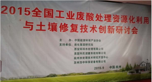 9月18日~20日,我公司派技術人員參加了在杭州舉辦的“2015全國工業廢酸處理資源化利用與土壤修復技術創新研討會”。