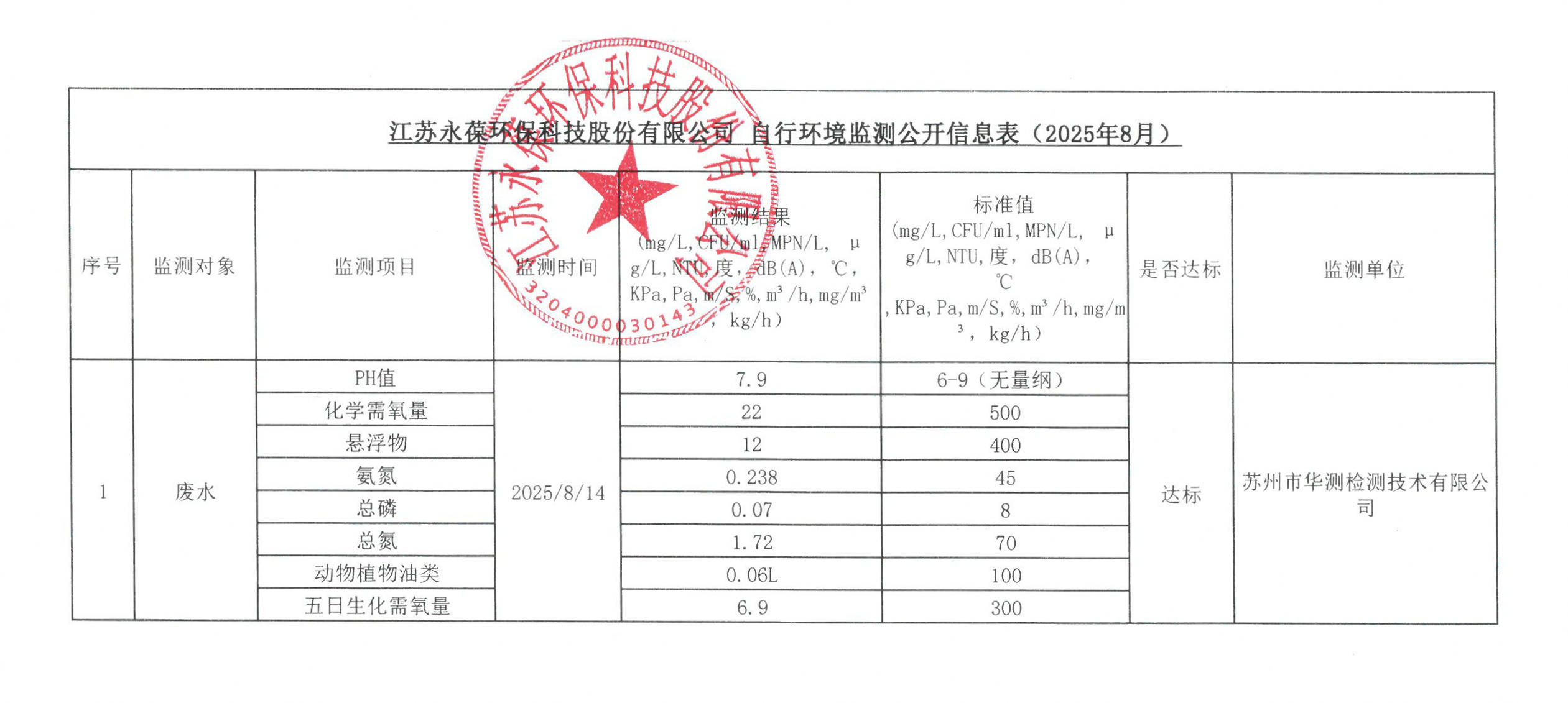 江蘇永葆環保自行環境監測公開信息