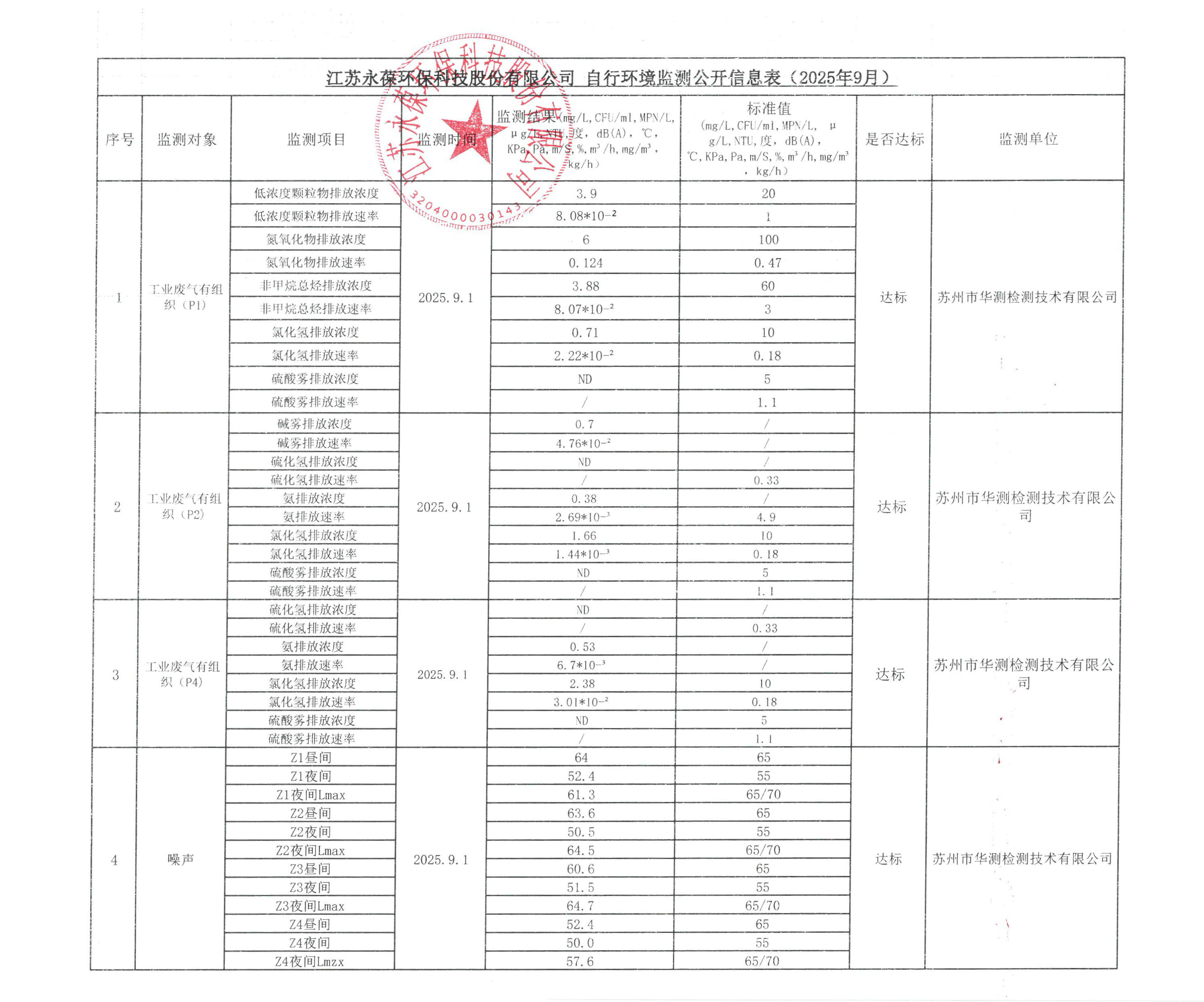 江蘇永葆環保自行環境監測公開信息
