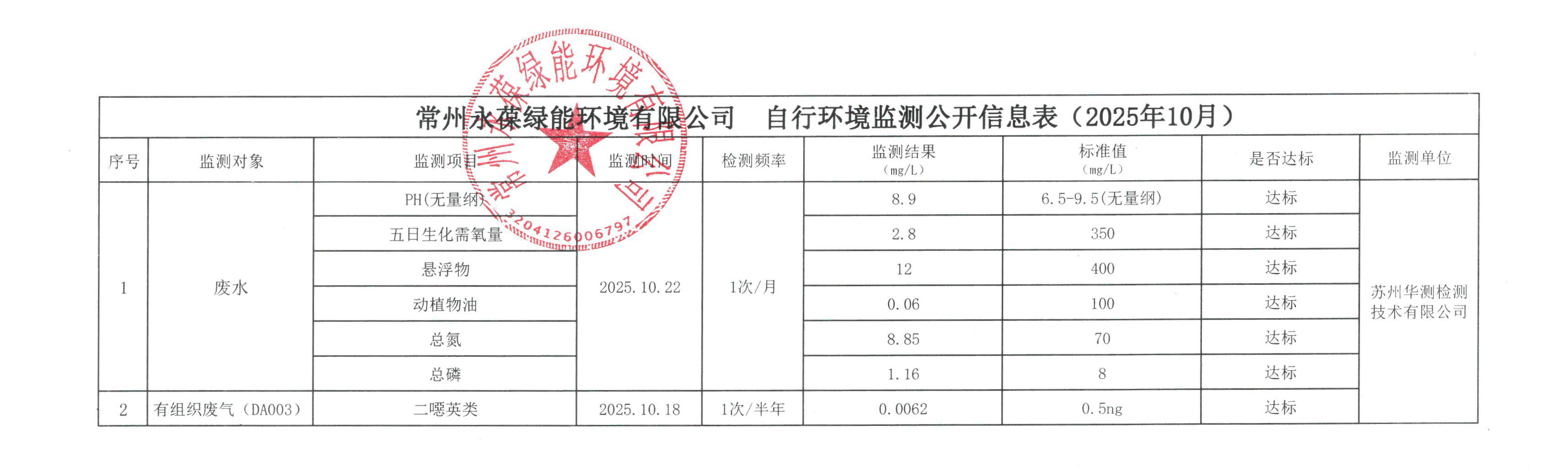 » 江蘇永葆環保自行環境監測公開信息