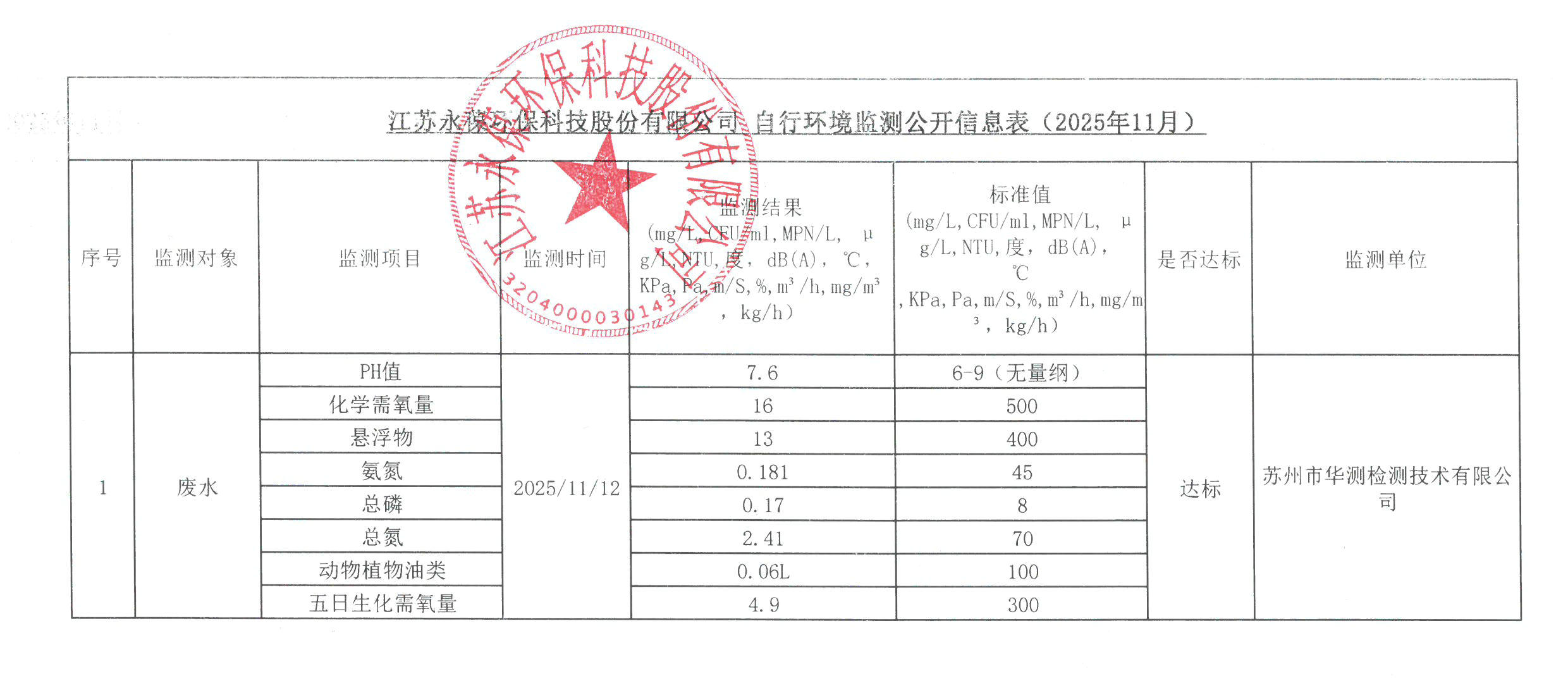 江蘇永葆環保自行環境監測公開信息