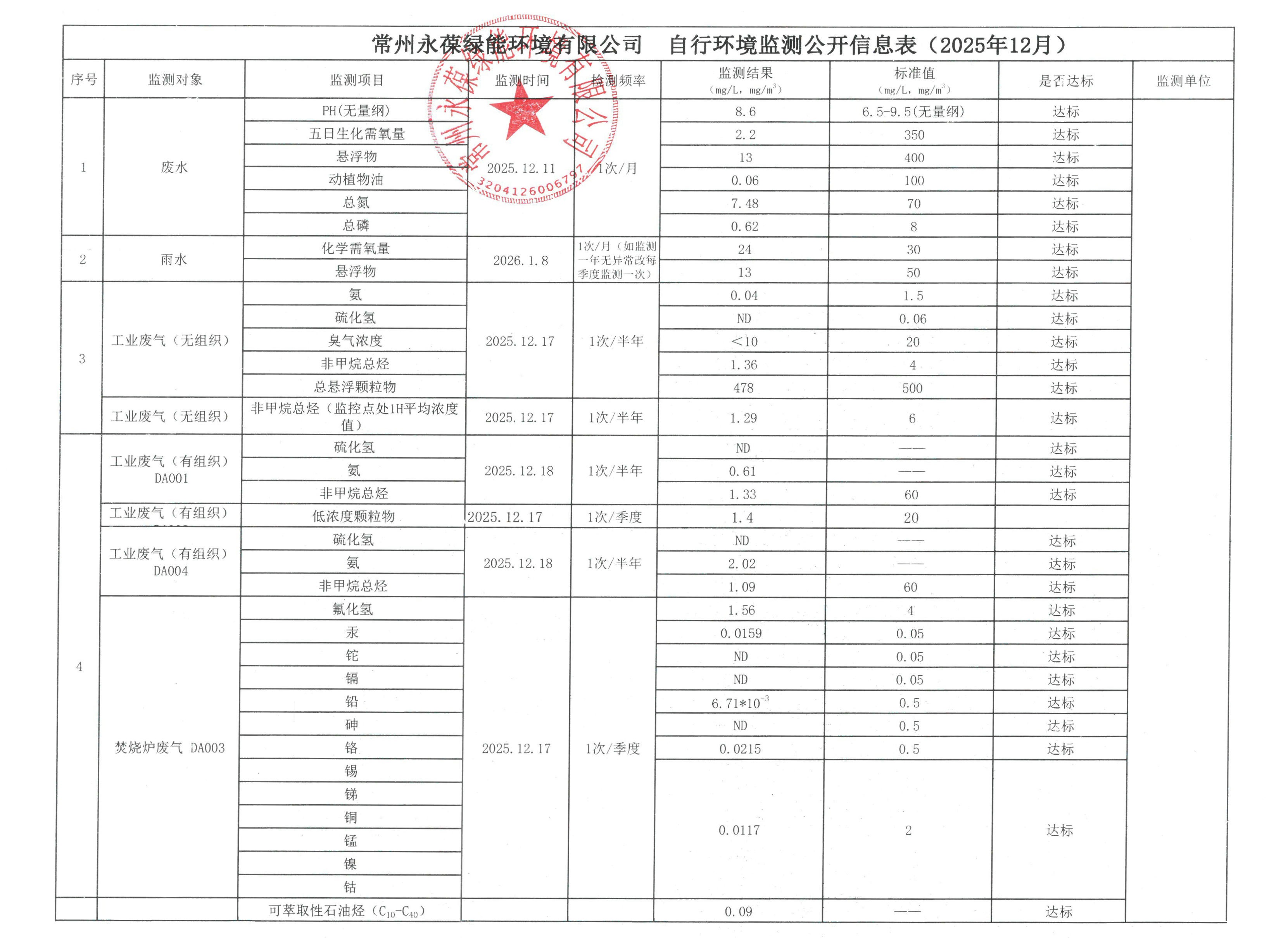 江蘇綠聯、永葆綠能、永葆綠源自行環境監測公開信息