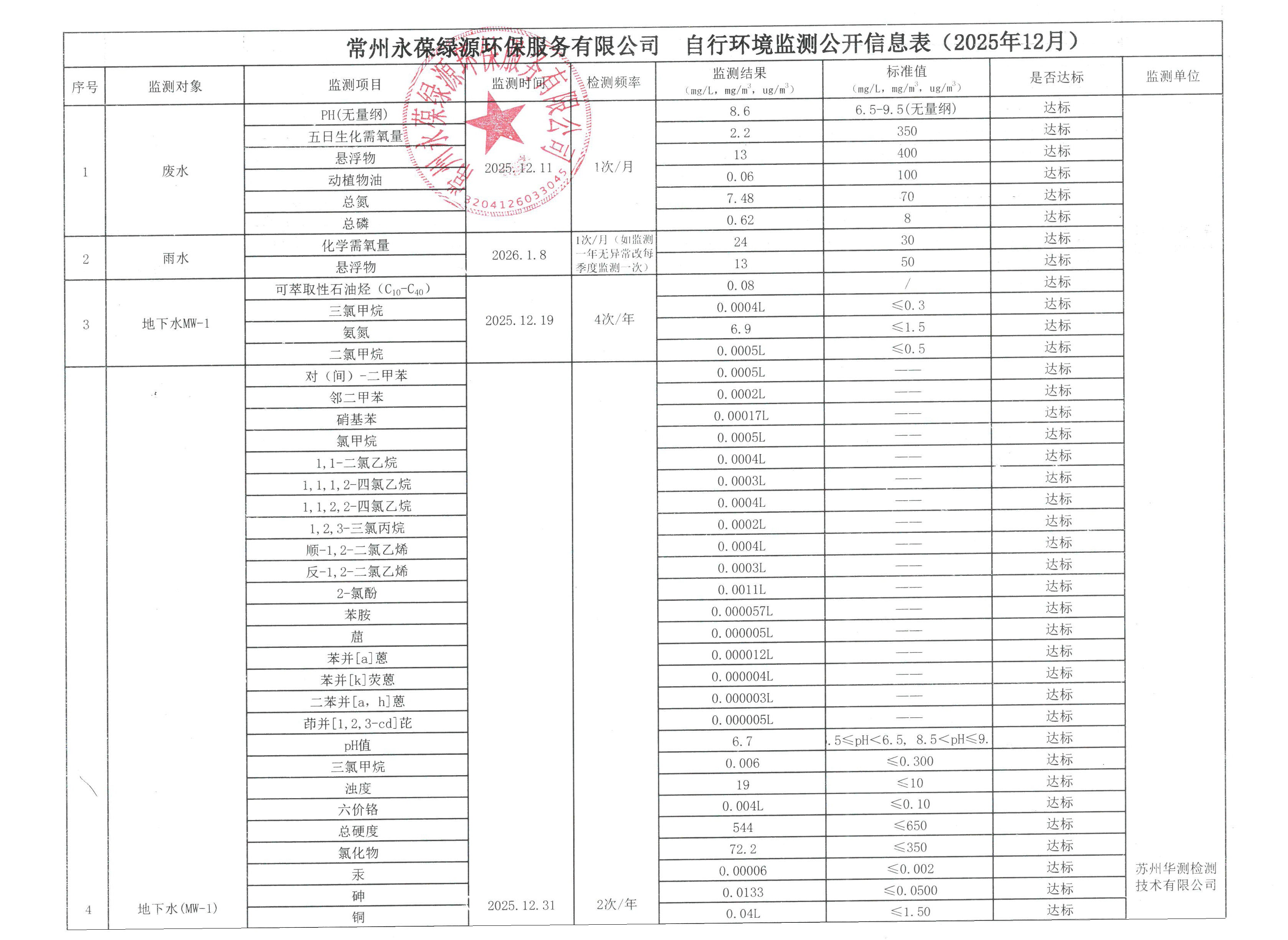 » 江蘇永葆環保自行環境監測公開信息