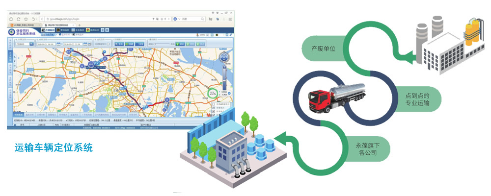 提供危廢專業運輸服務,通過自行設計的廢棄物物流管控軟件、專業化收集體系,實現固廢點到點的安全轉移。